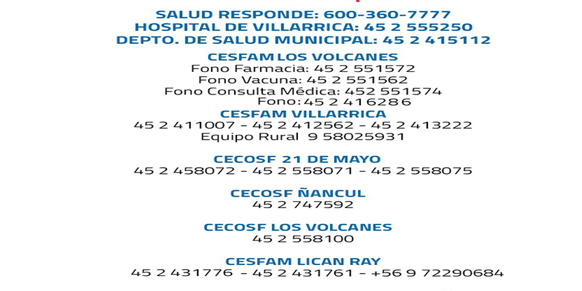 Teléfonos de la red de salud disponibles para la comuna de Villarrica