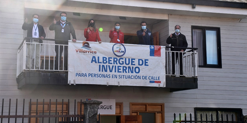 El albergue que administra el municipio de Villarrica, a través del programa AMULEN, está ubicado en una moderna edificación en calle Manuel Rodríguez 1183. Es un dispositivo de emergencia de carácter temporal que entrega prestaciones de alojamiento, alimentación, higiene, abrigo y atención básica en salud a las personas en situación de calle.