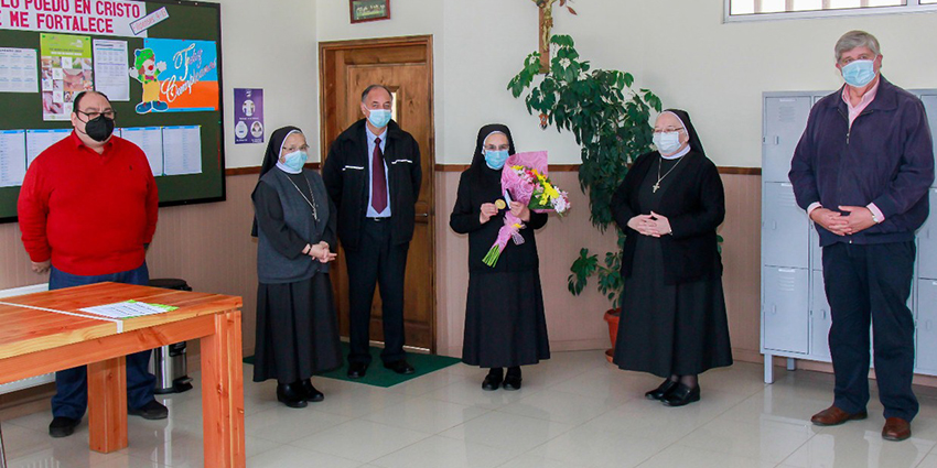 En el marco del Aniversario N° 469, y por Decreto Alcaldicio N° 572 de fecha 23 de abril de 2021, la Municipalidad de Villarrica por acuerdo del Honorable Concejo Municipal, otorgó este viernes, la Medalla Gerónimo de Alderete a la religiosa de la Congregación Hermanas Franciscanas del Sagrado Corazón de Jesús, Representante Legal del Colegio Alberto Hurtado de Villarrica, Hna. María Mirta Manosalva Sagredo, (Hna. Guillermina), Profesora Normalista, con 48 años de servicio a la educación. La máxima condecoración ciudadana instaurada en el año 1987, mediante el cual se instituyó el mérito, como público reconocimiento en pro del engrandecimiento de la comuna. “Toda mi vida la he dedicado a la educación de los niños y niñas, por un país mejor. Este premio es un reconocimiento al trabajo de todos los que trabajamos aquí”. Hna. Guillermina. Rep. Legal Colegio Alberto Hurtado.