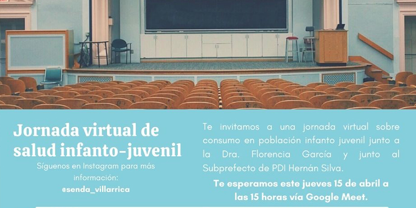 Una Jornada Virtual de Salud Infanto-Juvenil, ha organizado el programa Municipal Senda-Previene Villarrica, para este jueves 15 de abril, a las 15:00 horas. A la actividad fueron convocados establecimientos educacionales de la comuna, tanto municipales como particulares subvencionados y distintos profesionales representantes de departamentos municipales, que trabajan con población infanto-juvenil.