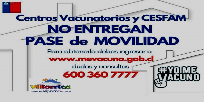 El Departamento de Salud de la Municipalidad de Villarrica informa a la comunidad que no se están entregando pases de movilidad en ninguno de nuestros centros de atención ni vacunatorios.