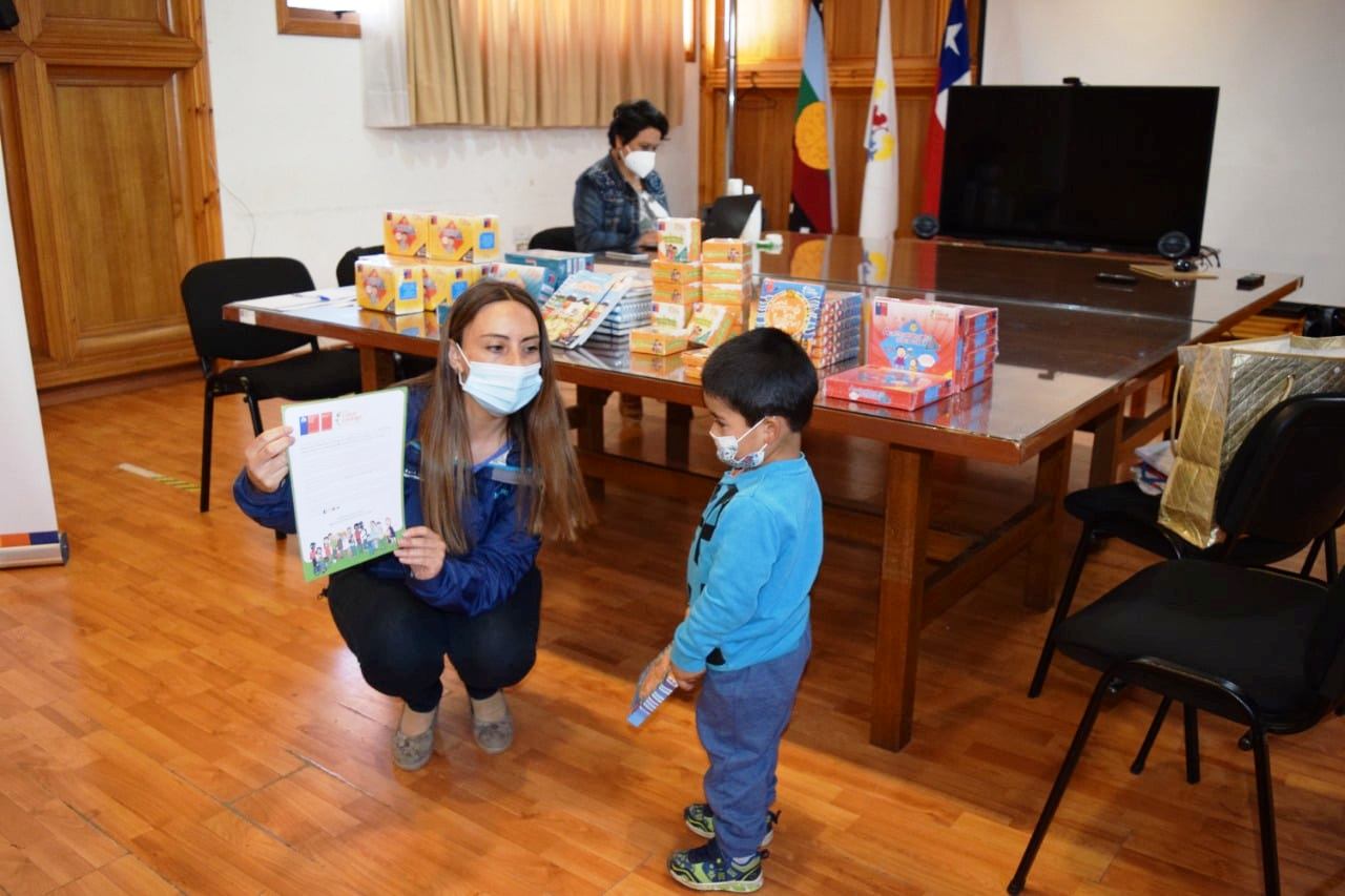 El material entregado corresponderá a la edad actual del niño/niña, sin entrega de material retroactivo, entre los cuales se encuentran kits didácticos y de estimulación respetuosa por cada una de las etapas evolutivas de los niños y niñas. “Acompañándote a Descubrir 1”, para niños y niñas entre 4 meses hasta 1 año de edad; “Acompañándote a Descubrir 2”, para niños y niñas desde 1 año hasta los 2 años; “Acompañándote a Descubrir 3”, comprende desde los 2 hasta los 3 años, “Contemos una Historia”, ideada para niños y niñas de 3 a 4 años y por último encontramos el material “Descubriendo mis Emociones”, para niños y niñas de 4 años de edad.