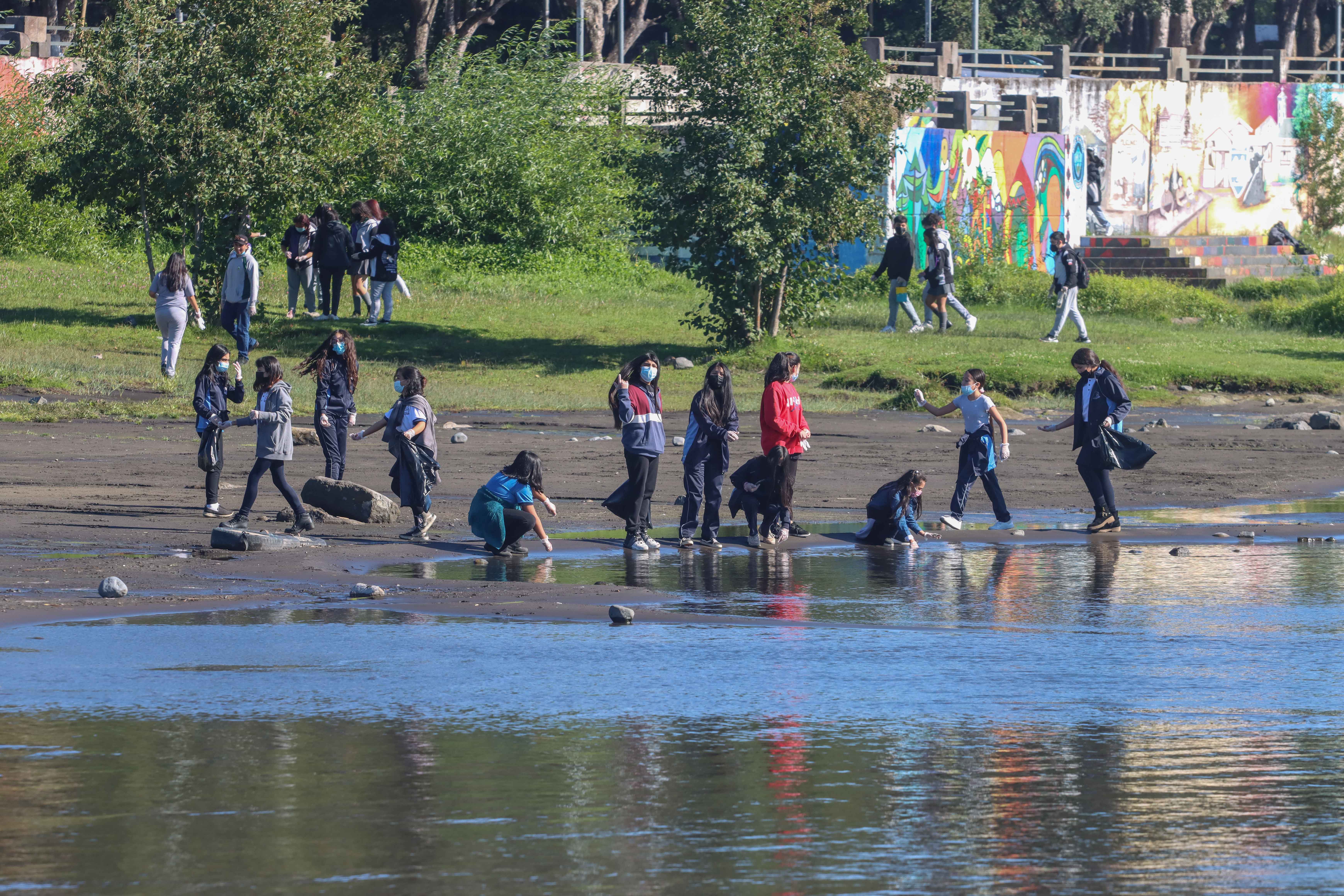 A la misma hora, alumnos de distintos establecimientos municipales y particulares subvencionados, participaron en un operativo de limpieza de playa.