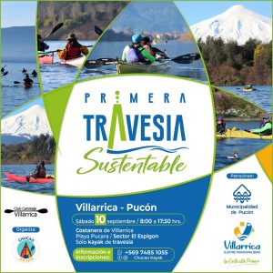 Un evento en kayac, a desarrollarse por el Lago Villarrica, entre Villarrica y Pucón, unirá a expertos y algunos aficionados a este tipo de actividades de largo aliento en la denominada Primera Travesía Sustentable que se efectuará -por un trecho de 27 kilómetros- este sábado 10 de septiembre, entre las 8 y las 17.30 horas, saliendo desde Playa Pucara, en el sector Espigón.