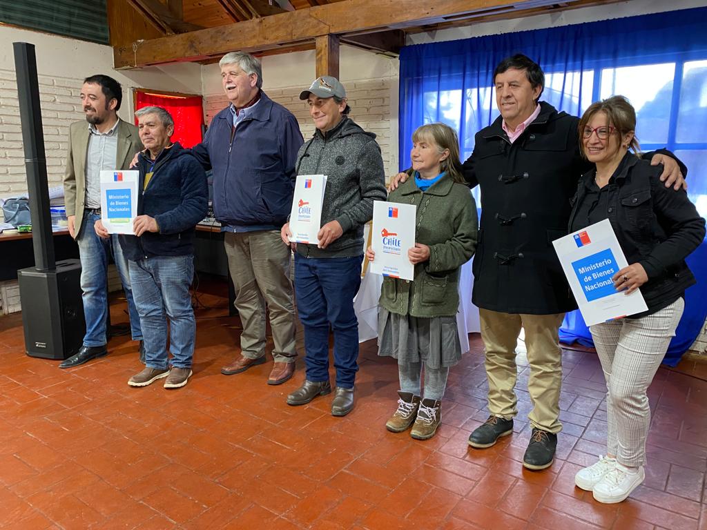 Fue en las dependencias del Departamento de Desarrollo Rural de Villarrica que ambas autoridades, acompañados por el concejal Jaime Beltrán y la diputada Ericka Ñanco, protagonizaron la ceremonia en la cual 15 personas de la zona sentenciaron, formalmente, la propiedad de su terreno.