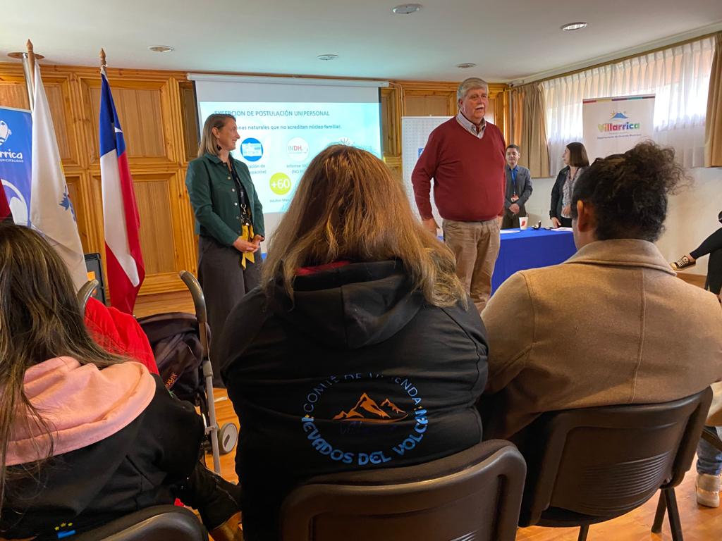 Representantes de aproximadamente mil 500 familias de Villarrica, postulantes a casa propia de más de 15 comités de viviendas, se reunieron esta semana, en la Municipalidad local, con la Seremi de Vivienda y Urbanismo, Ximena Sepúlveda; la encargada de la Unidad de Vivienda Municipal, Sandra Saravia y el alcalde de la comuna, Germán Vergara, con el objetivo de conocer -de forma más directa con las autoridades- sobre los pasos a seguir para postular a un subsidio habitacional.