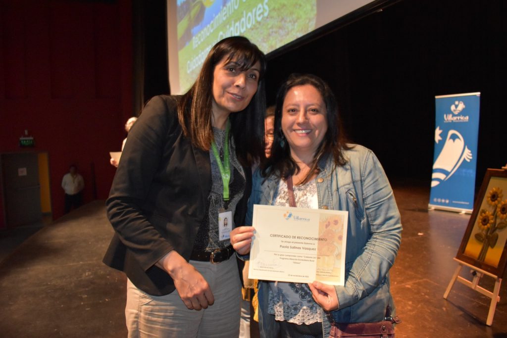 Con la idea de reconocer la sacrificada labor de cuidadora, en la oportunidad se entregó un reconocimiento a seis de ellas, beneficiarias también del sistema del área de salud municipal de Villarrica.