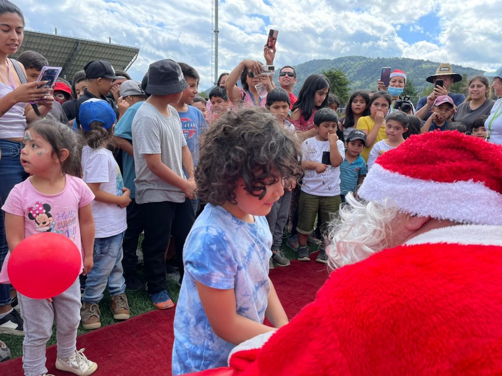 Los cálculos más pesimistas hablan que, al menos mil 500 personas se reunieron en la festividad navideña, realizada el pasado miércoles en el Estadio Municipal “Jonattan Muñoz Allulef” de Lican Ray en una actividad organizada por la Municipalidad de Villarrica, en conjunto con organizaciones locales, las que vieron coronar la festiva jornada con la llegada desde el aire del “Viejito Pascuero”, quien fue recibido con una ovación, especialmente por los infantes del sector.