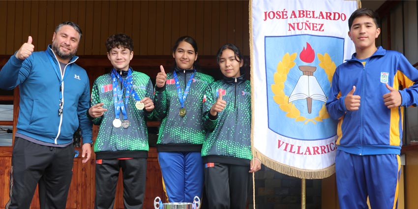 Positivos resultados acaba de obtener el equipo de atletismo de la Escuela Municipal José Abelardo Núñez de Villarrica, conjunto que de la mano de su profesor Alejandro Pino se posicionó en lo alto de los podios en los recientes Juegos Nacionales Deportivos Escolares 2022, realizados en Talagante y en donde lo más destacado fue la medalla de oro, en el lanzamiento de la bala, de la alumna de séptimo básico, María Pía Garrido.