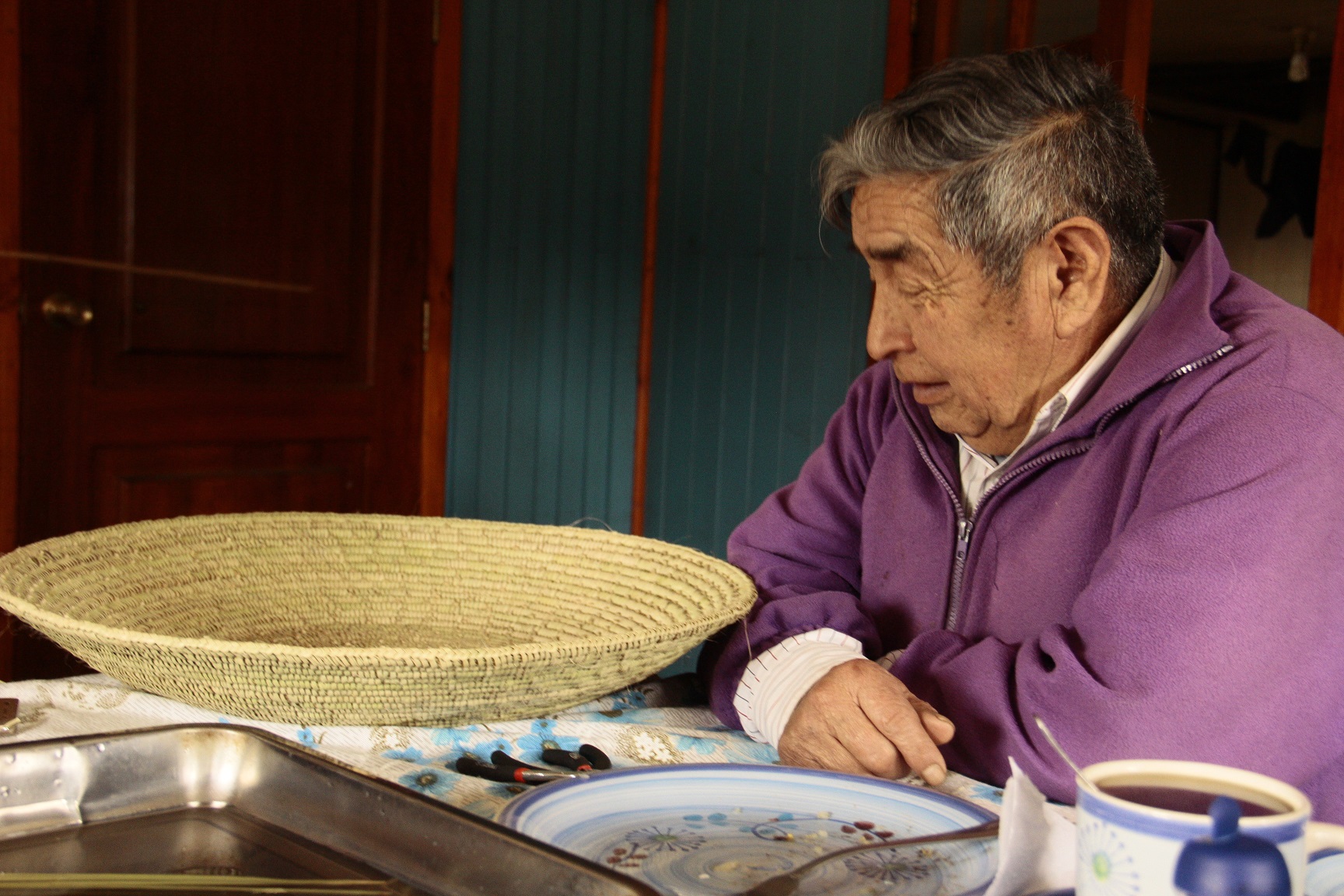 Juan Antihuen, del sector Quilaco, fue monitor del taller de cestería mapuche, impartido durante muchos años por la Oficina de Asuntos Indígenas, entidad que postuló su trabajo, consistente en un trenzado en corteza de koliwe, küla y coirón, una de las técnicas más antiguas en este ancestral oficio.