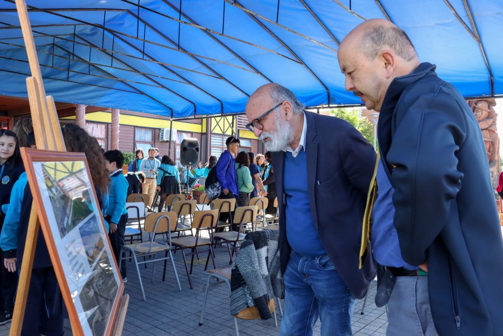 La exposición consistió en fotografías históricas de lo que fue la presencia del tren en Villarrica, en una labor “que se ha realizado a pulso, con mucha energía por parte de los profesores y estudiantes y lo valoramos bastante, porque se abre también a la comunidad”, aseguró el personero del establecimiento local.