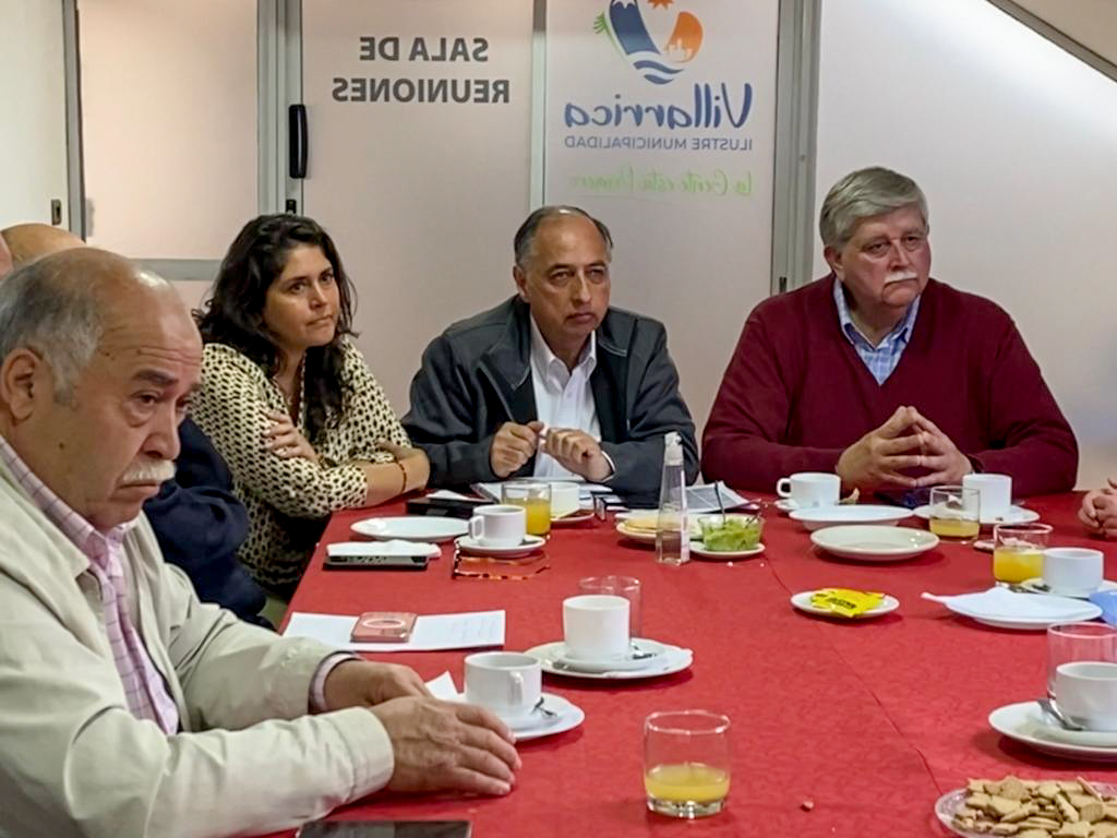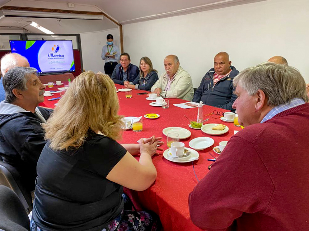Una extensa reunión sostuvieron, esta semana, los directores de la Cámara de Comercio y Turismo de Villarrica junto al alcalde de la comuna, Germán Vergara, el director de la Unidad de Desarrollo Económico Local (UDEL), Munnir Saphier y la encargada de la Oficina de Seguridad Pública del Municipio local, Marcela Solano, para avanzar en distintas materias; entre ellas, la fiscalización al comercio ambulante ilegal.