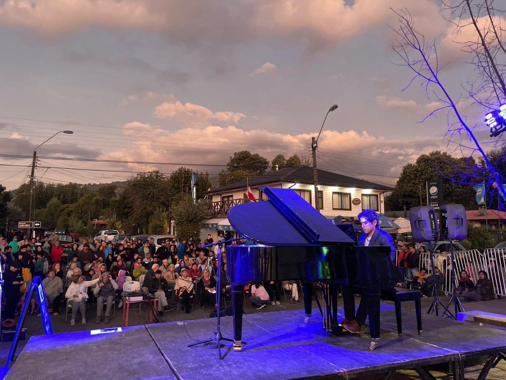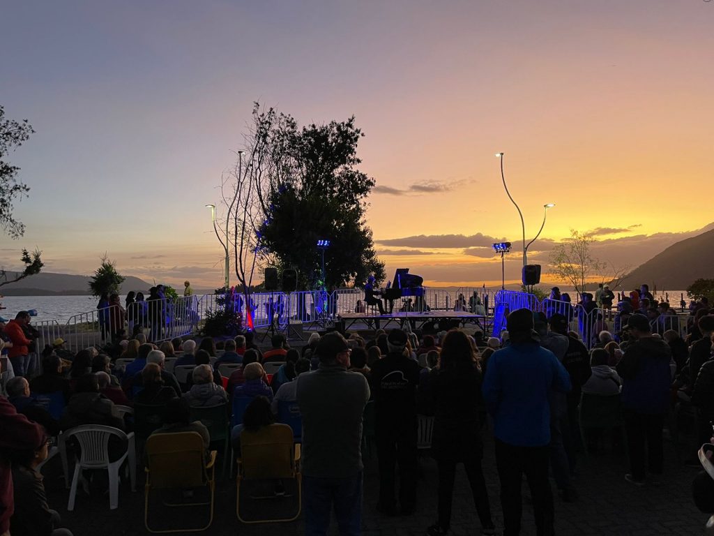La primera de las actividades dejó hermosas postales, junto a la música en piano y el lago Calafquen, gracias a la presentación del artista villarricense, Danilo Pérez-Barría, a quien aplaudió más de un centenar de asistentes; entre ellos, el alcalde de la comuna lacustre, Germán Vergara.