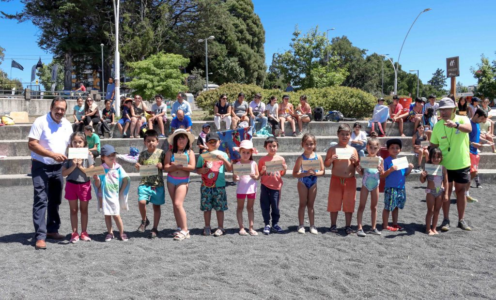 Con el habitual entusiasmo juvenil y empeño infantil, casi un centenar de niñas y niños fueron certificados en la primera parte del que ha sido un masivo taller de natación, en el marco de los 22 espacios entregados gratuitamente por la Municipalidad de Villarrica, para la práctica veraniega de actividades de esparcimiento deportivo, no sólo para menores sino también para adultos.