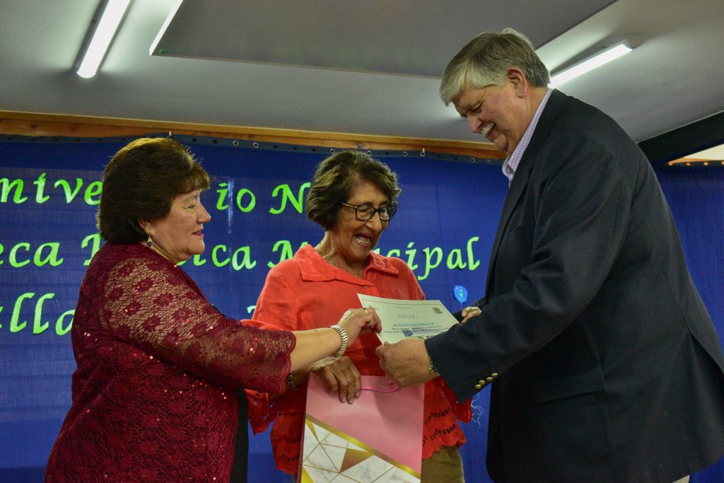 Fue el jefe comunal quien destacó la entrega de los funcionarios en su labor de mantener viva el alma intelectual de la comuna de Villarrica. “Es un espacio abierto a la comunidad, que se ha aprovechado en eso. Ahí están nuestros artistas, escritores o usuarios que siempre han estado en forma directa con nuestra Biblioteca”, indicó el alcalde Germán Vergara, quien destacó el trabajo de la directora de la Biblioteca, Roxana Díaz, de quien dijo que “uno siempre tiene que tener gente que le guste lo que hace y aquí ha cumplido muy bien Roxana Díaz con su equipo que tienen el corazón puesto acá”.