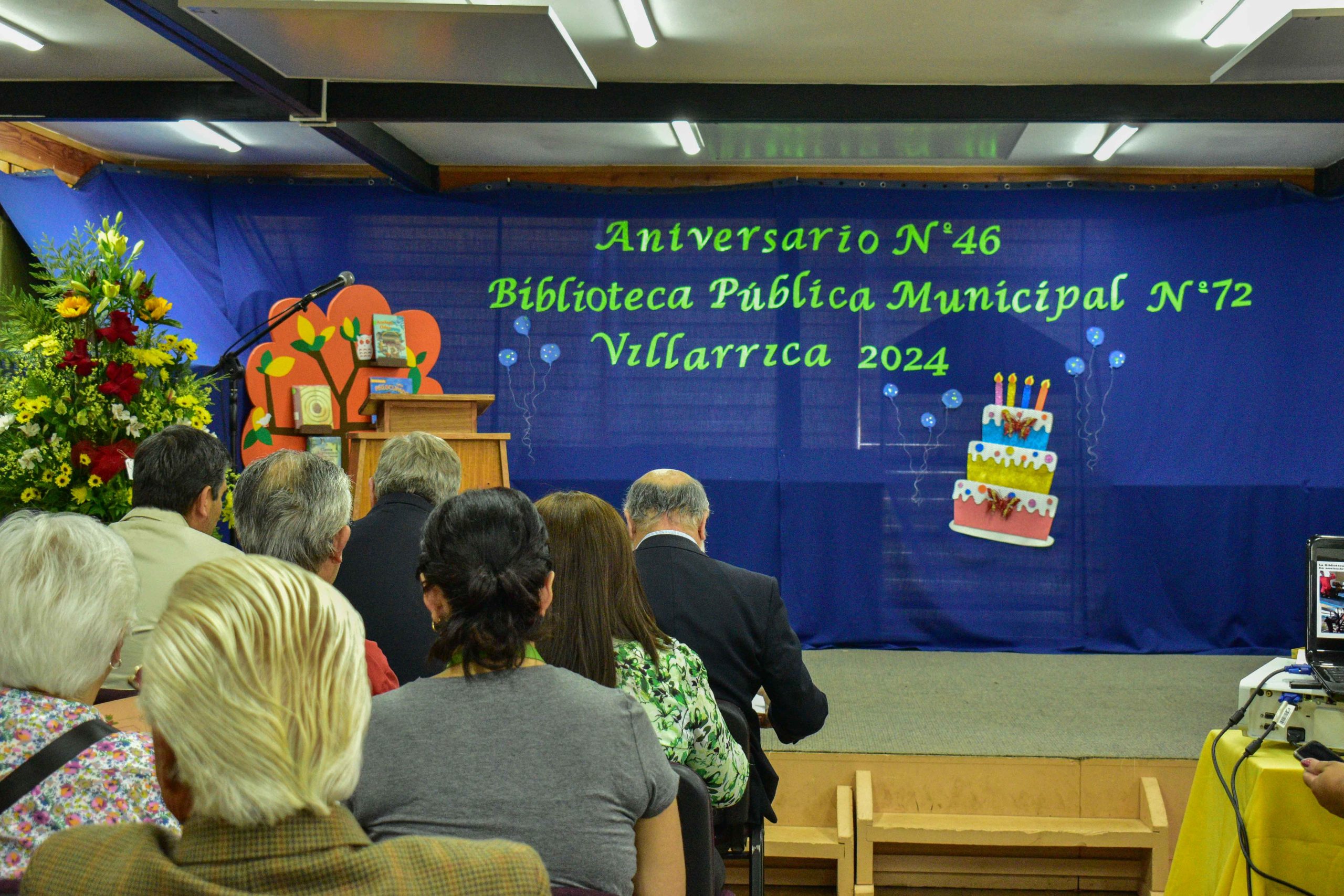 46 velitas apagó la semana última la Biblioteca Municipal de Villarrica “Dictino Niño de la Horra”, en una sencilla, pero muy significativa ceremonia realizada en las dependencias de esta institución ubicada en la Avenida Pedro de Valdivia N°1050, hasta donde llegaron para los festejos el alcalde de la comuna, Germán Vergara; el concejal, Jaime Beltrán; el coordinador regional de Bibliotecas Públicas de La Araucanía, Leonardo Naranjo y en donde fueron anfitriones, además de la directora del establecimiento, Roxana Díaz, los funcionarios de esta tradicional dependencia pública.