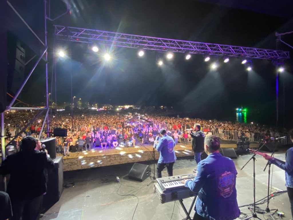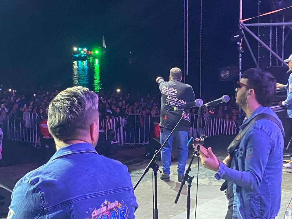 El cumbianchero y contagioso ritmo de Amar Azul hizo vibrar a más de 15 mil personas en la Playa Pucara de Villarrica en una Noche del Lago 2024, instancia veraniega que festejó con la popular agrupación argentina sus 28 años de vida en una repleta Costanera villarricense.