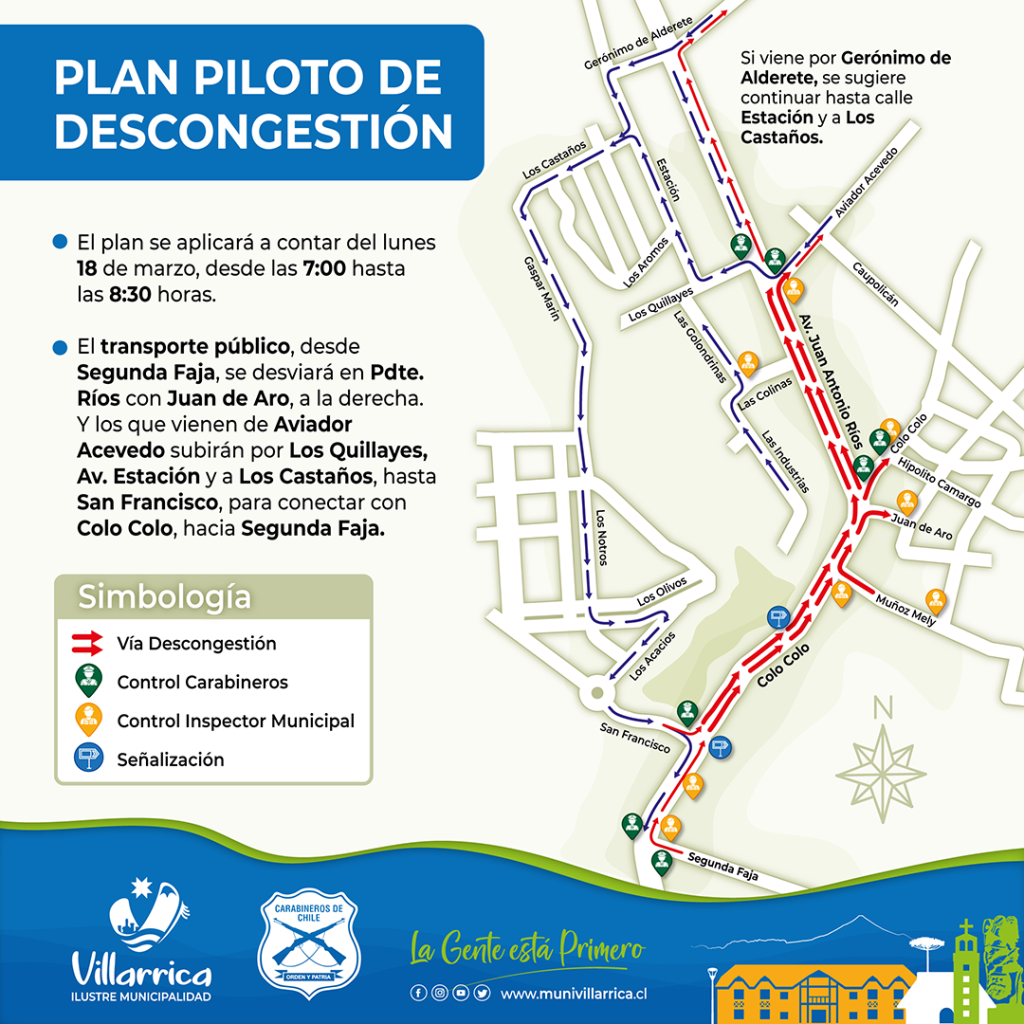 Un trabajo coordinado entre Carabineros y la Municipalidad de Villarrica -a través de su Oficina de Seguridad y Departamento de Tránsito- busca con un Plan Piloto de Descongestión, disminuir los atochamientos vehiculares que afectan, principalmente, al sector Segunda Faja en el afán de acceder a la zona céntrica de la comuna lacustre.