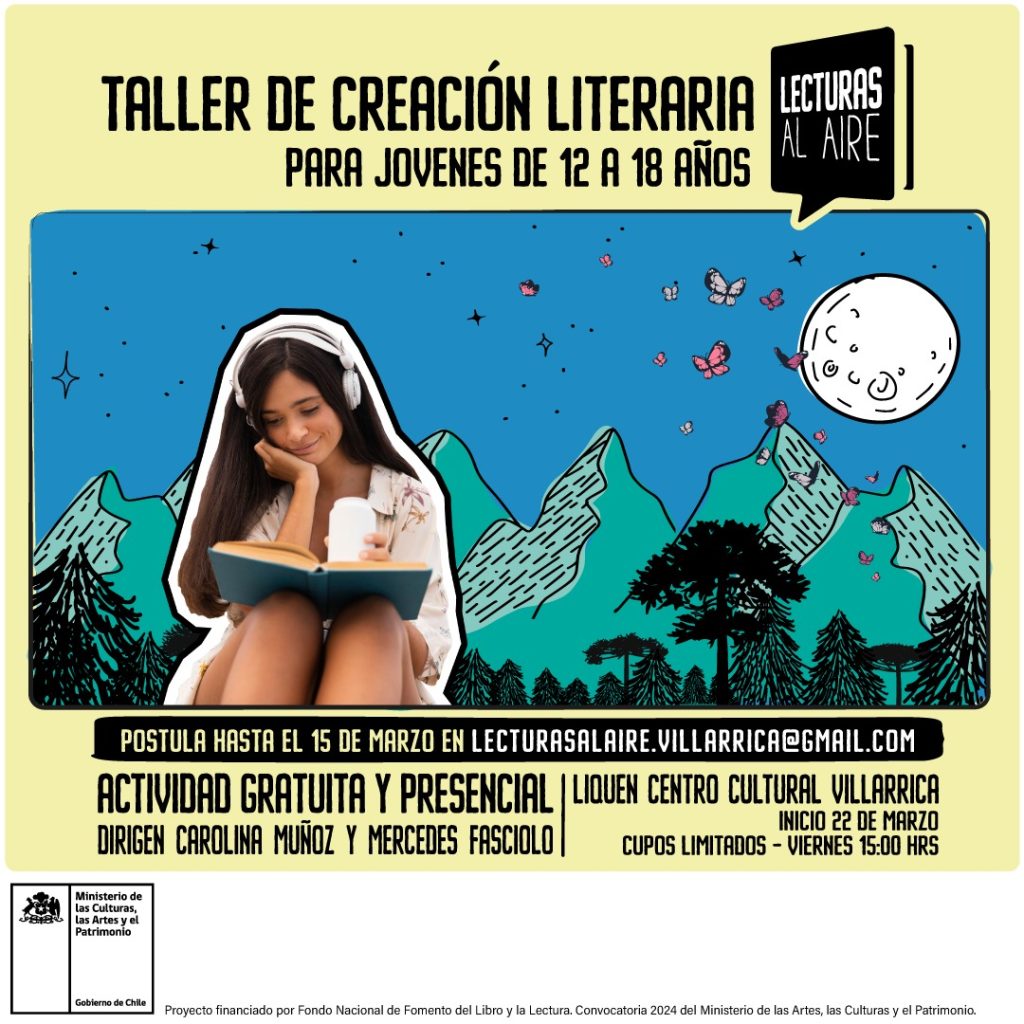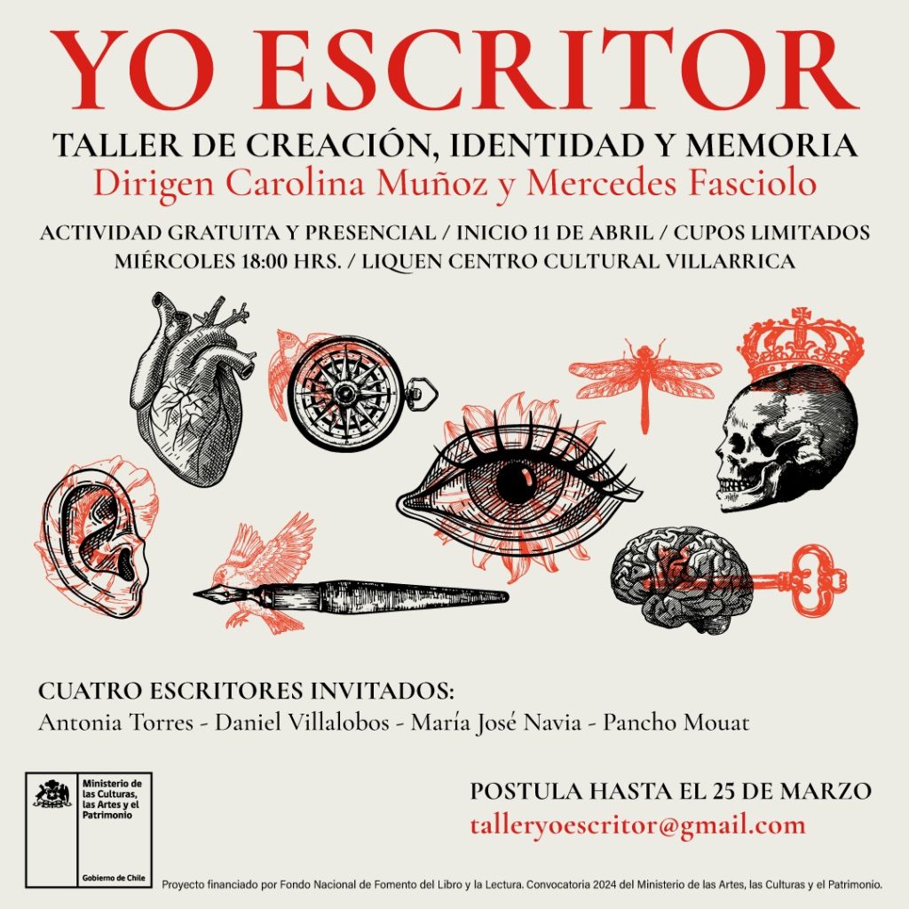 Por último, hasta el lunes 25 de marzo hay plazo para inscribirse para el Taller de Creación, Identidad y Memoria “Yo Escritor”, organizado por Carolina Muñoz y Mercedes Fasciolo, el que comenzará el 11 de abril, de 18 a 20 horas.