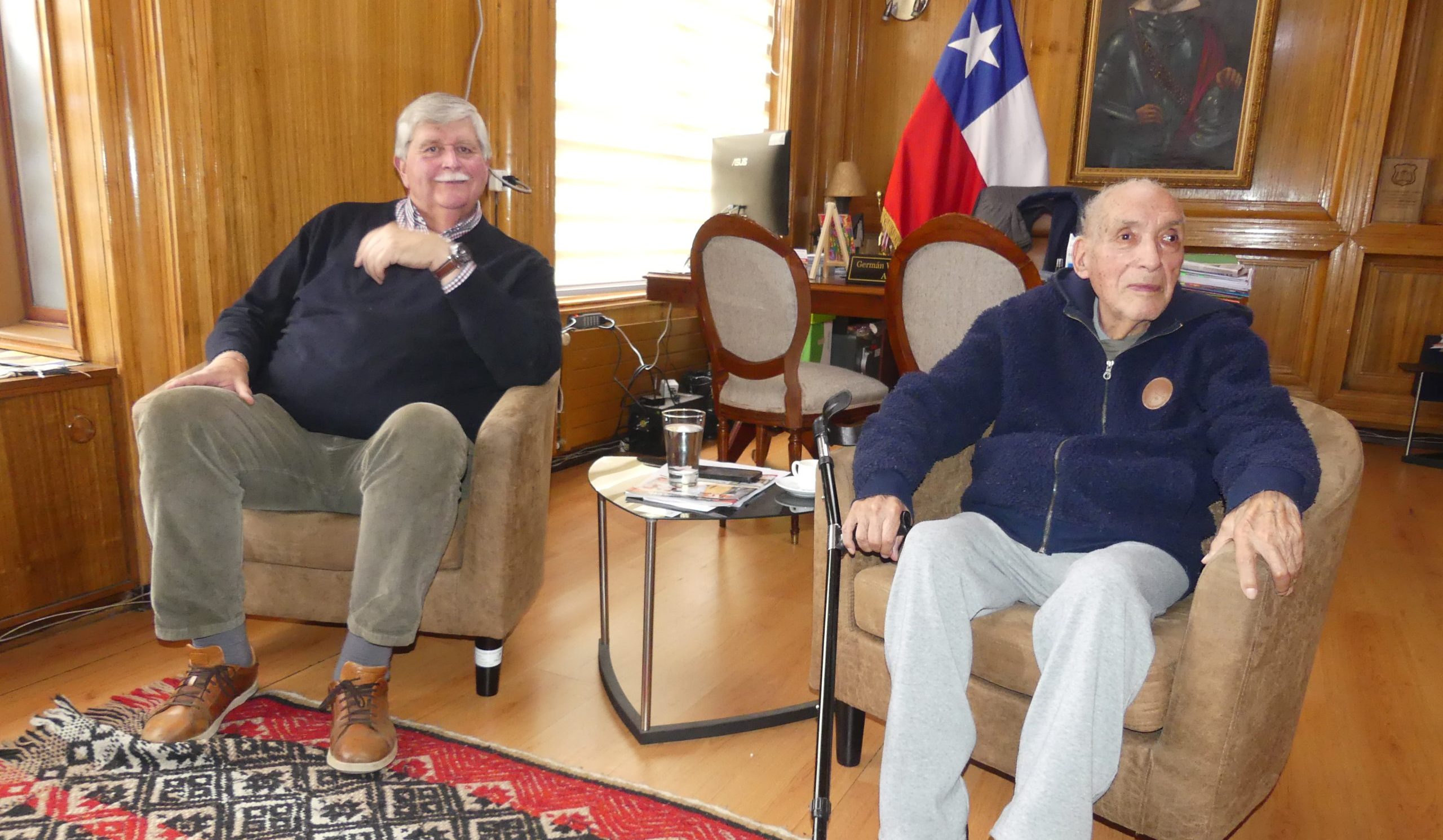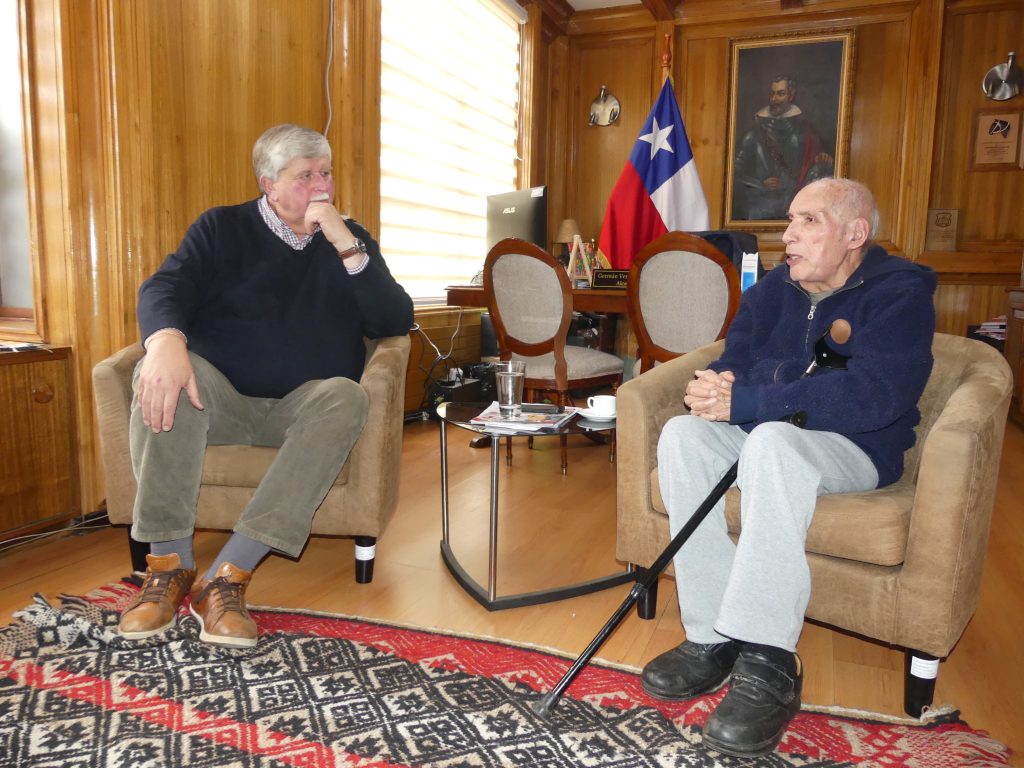 “Vine a saludar al alcalde Germán Vergara y, además, a invitarlo, con motivo de que -Dios mediante- cumplo 90 años de edad. Con don Germán Vergara nos conocemos hace muchos años y, además, conocí mucho a su papá, a sus tíos y lo vine a invitar para un almuerzo que me están realizando mis hijos con motivo de mis 90 años, para conversar sobre el presente y el futuro de Villarrica”, dijo el investigador, acompañado del jefe comunal villarricense.