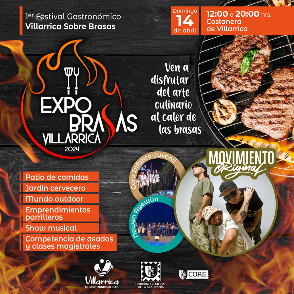 En plena Costanera, entre calle Colo Colo y Ernesto Wagner se proyecta el evento parrillero, ocupando parte del Espigón y la Playa Pucara para el show final, en horas de la tarde. Una competencia de parrilleros que trae el productor, Álvaro “Pelado” Molina, quien indicó que ésta “es la primera versión de Expobrasa o Villarrica Sobre Brasas, como torneo a la orilla del Lago Mallolafken y de fondo el Rukapillán; por lo tanto, es un hito súper importante y queremos posicionarlo como la capital de la plateada, con el sabor muy particular del sur de Chile porque es un corte que es muy distinto a otros países, incluso a lo largo de nuestro país. La plateada, como se desposta acá, la vamos a hacer de una manera rústica o más convencional para nosotros los sureños”.