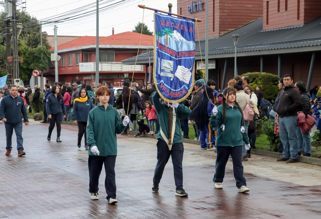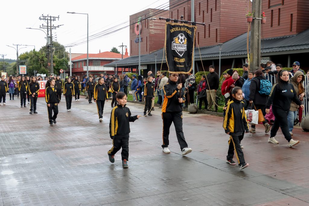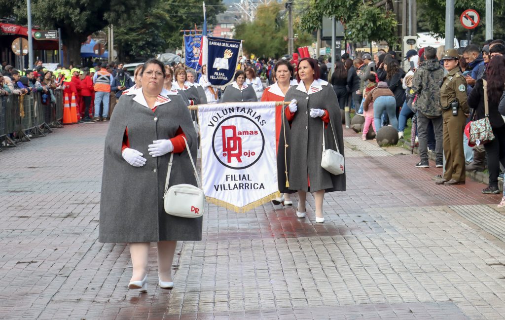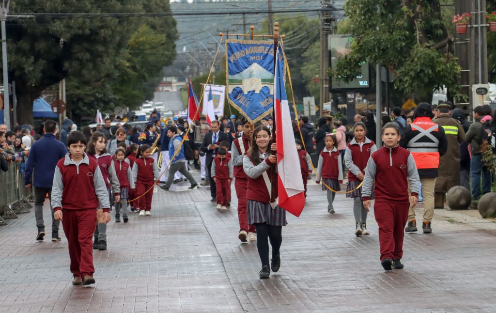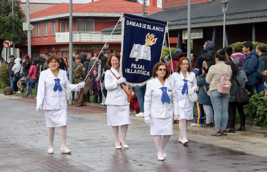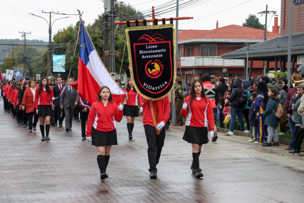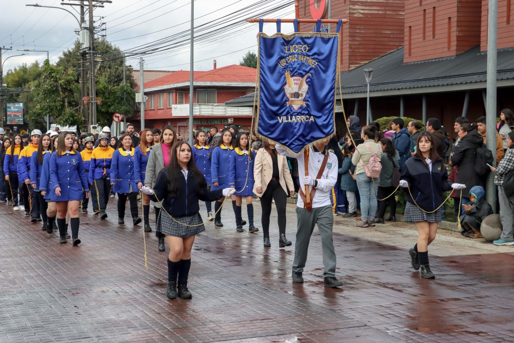 Fueron más de 40 instituciones, entre colegios, escuelas y liceos; además de organizaciones sociales, clubes deportivos y funcionarios municipales, los que dieron vida a la presentación solemne y aplaudida por los asistentes al son de las bandas del Destacamento N°8 Tucapel, de la Escuela José Abelardo Núñez, de la Escuela Alberto Hurtado, la Banda Instrumental y Guerra de Loncoche más el Orfeón Comunal de Villarrica.