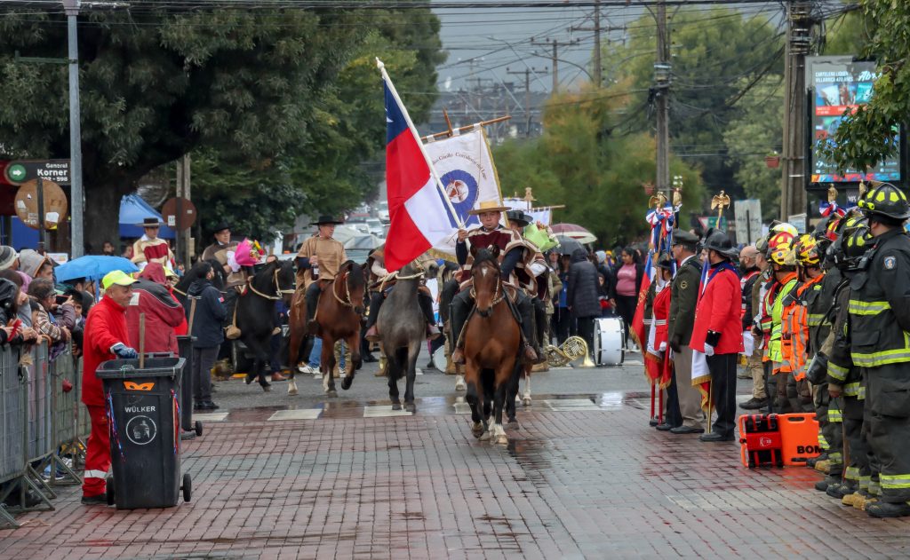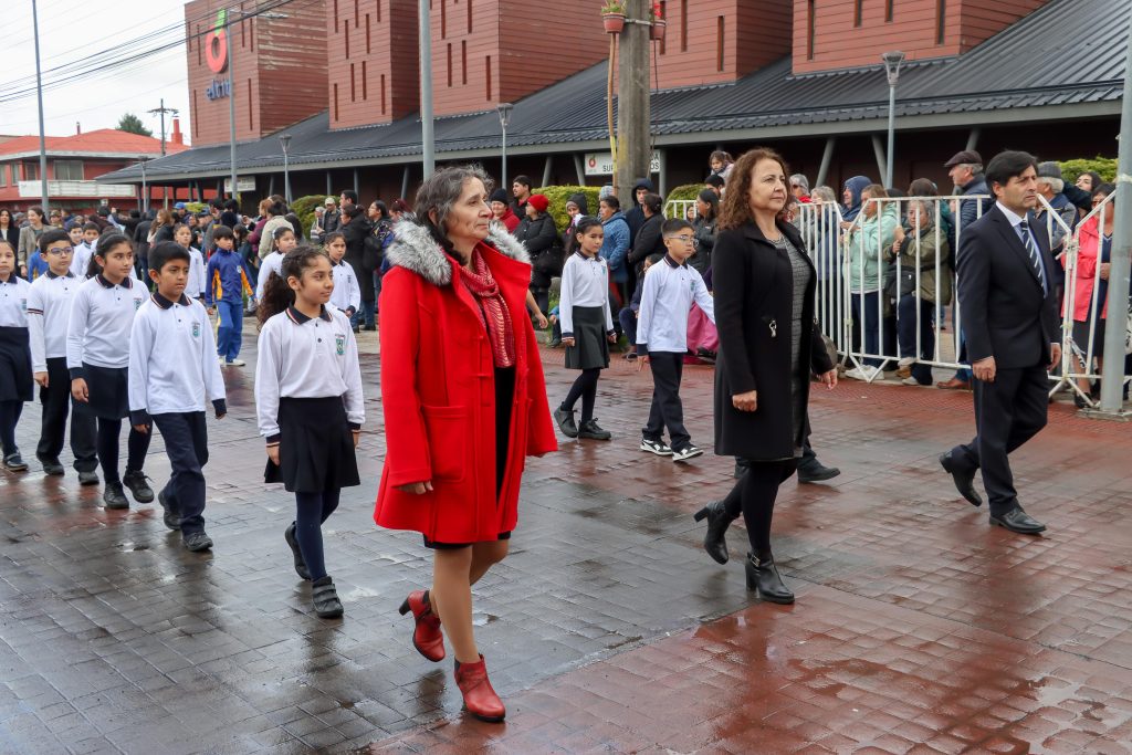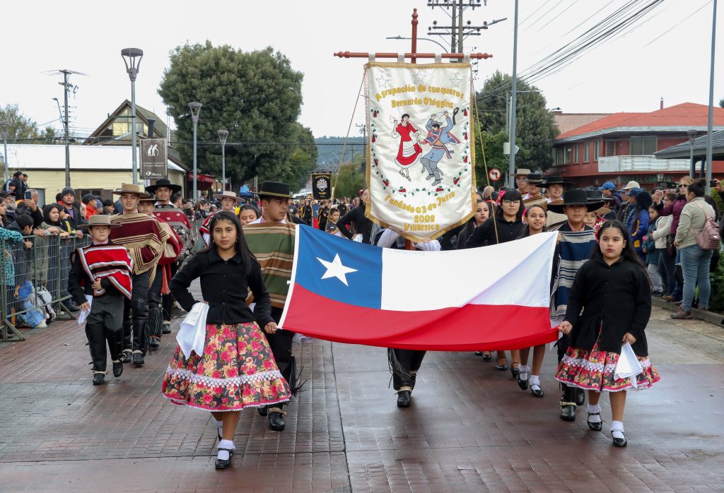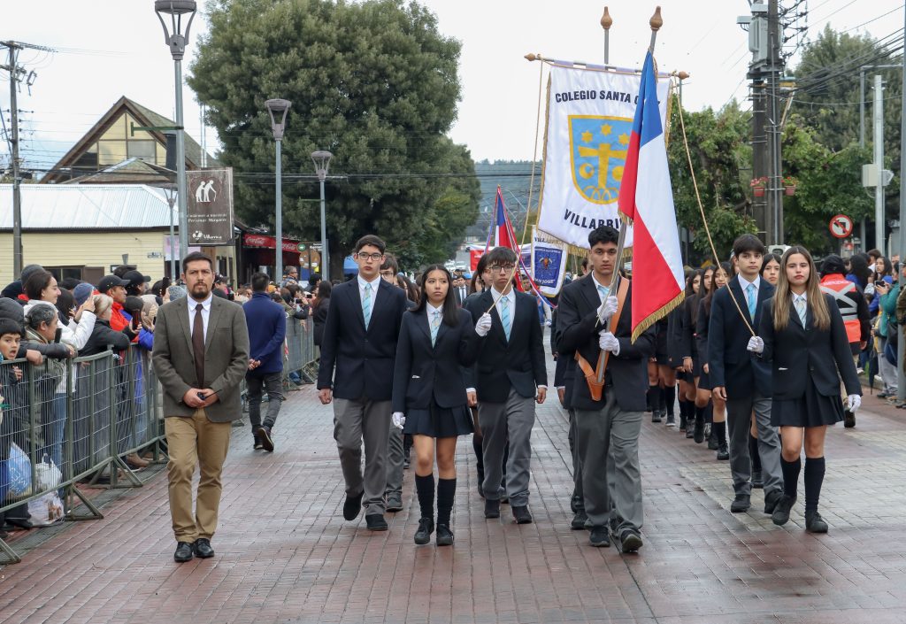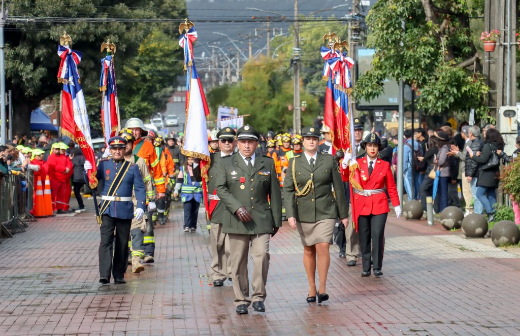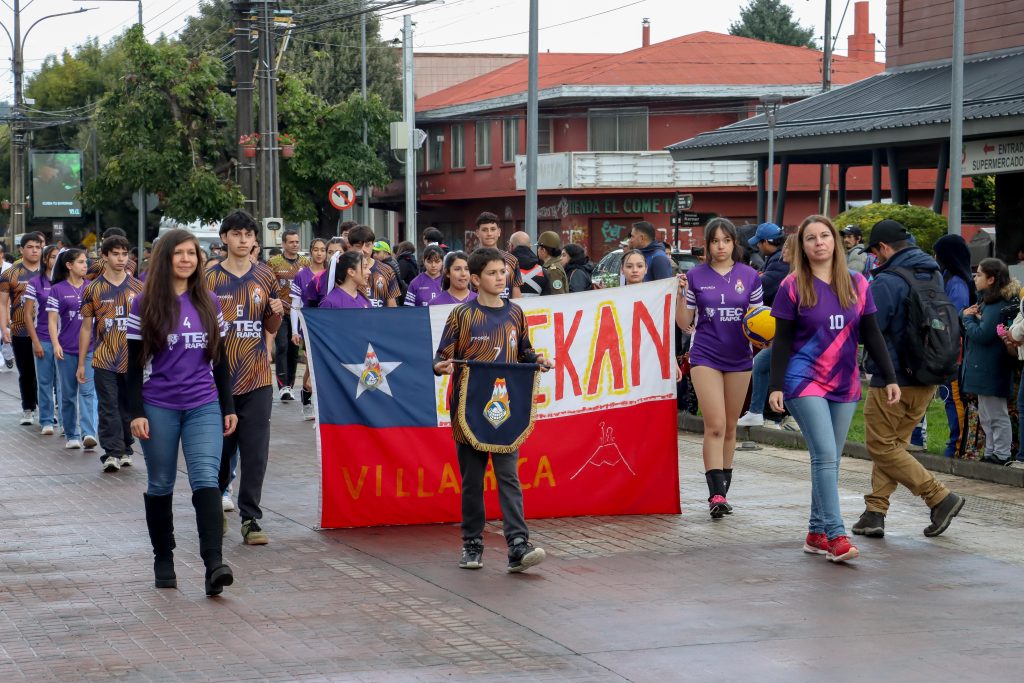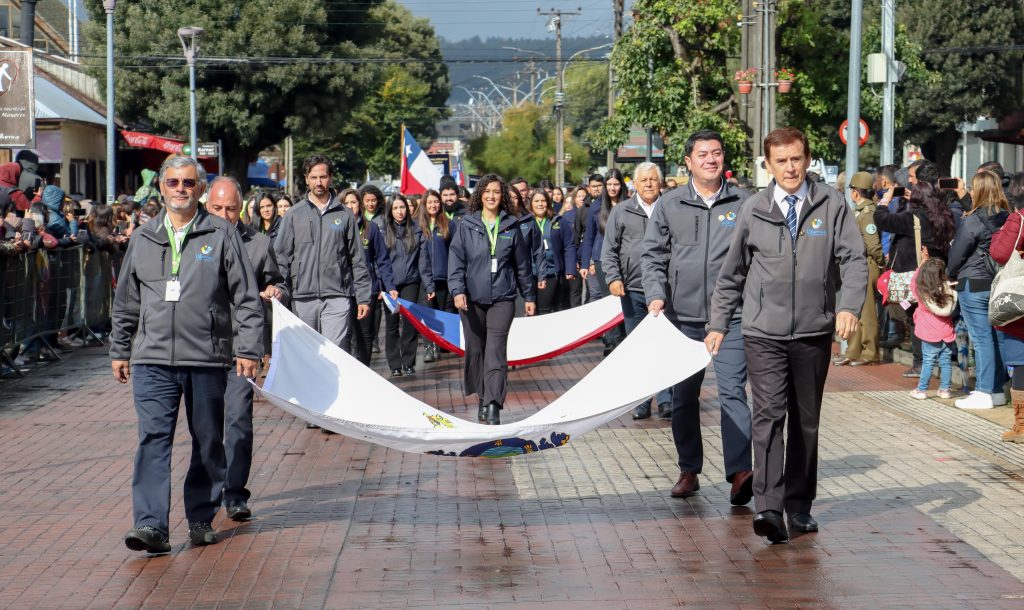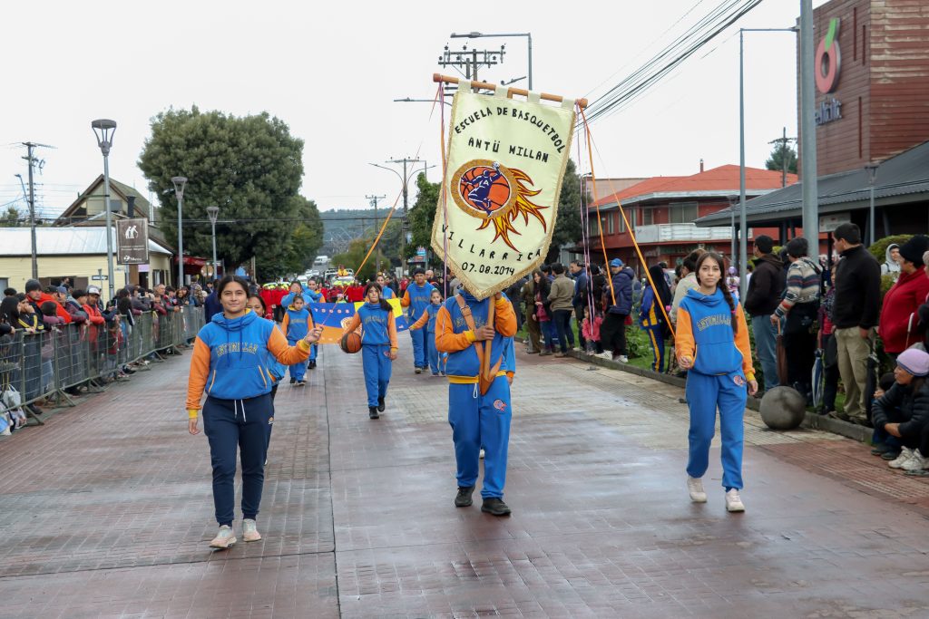 Fueron más de 40 instituciones, entre colegios, escuelas y liceos; además de organizaciones sociales, clubes deportivos y funcionarios municipales, los que dieron vida a la presentación solemne y aplaudida por los asistentes al son de las bandas del Destacamento N°8 Tucapel, de la Escuela José Abelardo Núñez, de la Escuela Alberto Hurtado, la Banda Instrumental y Guerra de Loncoche más el Orfeón Comunal de Villarrica.