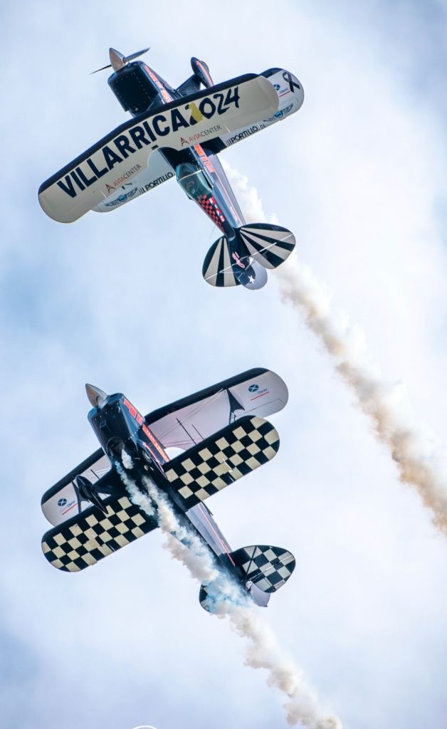 Los villarricenses asombraron a los miles de asistentes, con espectaculares maniobras en sus aeronaves Pitts S-2A, las que fueron aviones de los Halcones de las Fuerzas Armadas chilenas, en sus inicios de los años 80.