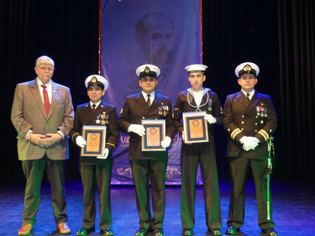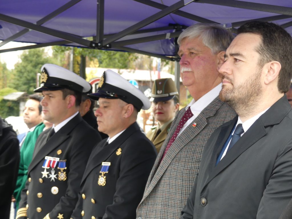 La jornada de conmemoraciones también sirvió para entregar reconocimientos, por años de servicio, a personal de la Armada, que labora en la Capitanía de Puerto Lago Villarrica, a cargo del capitán de corbeta Paul Hudson, quien valoró los eventos. “Estamos muy contentos y agradecidos por las oportunidades, por seguir las tradiciones patrias en esta hermosa comuna de Villarrica, el mismo día de la ceremonia nacional, así que agradecidos del Alcalde, del Concejo, de las autoridades que se hicieron presentes en estas ceremonias y de todos los participantes, en especial la comunidad escolar”.