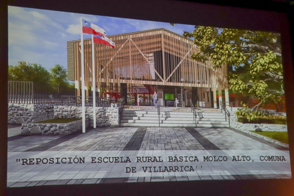 En Liquen Centro Cultural Municipal de Villarrica se llevó a cabo la entrega oficial a la comunidad educativa de la Escuela Municipal Molco Alto de la maqueta del diseño de reposición del moderno edificio que albergará a 125 alumnos de este establecimiento educacional del sector rural de la comuna.