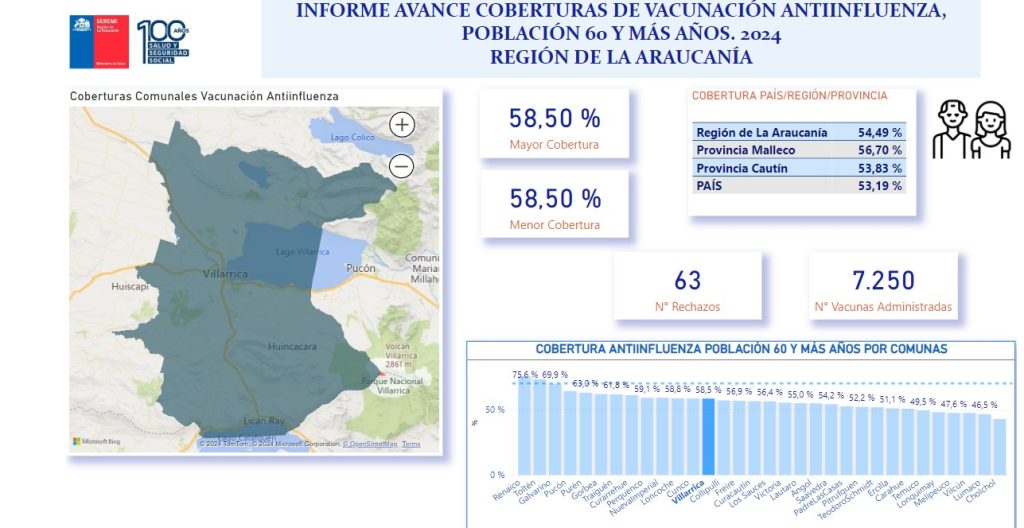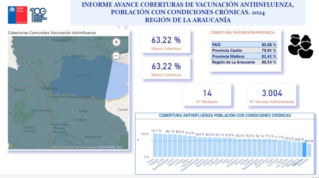 Según el enfermero encargado de la vacunación contra la influenza en el Departamento de Salud Municipal villarricense, Víctor Romero, hay mucha preocupación por el bajo interés de la población, en aplicarse esta vacuna justo cuando el virus de la influenza ha alcanzado su peak de contagios en Chile. “La última evaluación que se envió teníamos una cobertura general de la población objetivo de aproximadamente un 71 por ciento de las personas vacunadas. Esto, aún es un poco bajo, sobre todo, porque tenemos algunos grupos en los que estamos al debe todavía”, indicó el profesional, quien indicó que “dentro de ellos están los enfermos crónicos, los adultos mayores y también las mujeres embarazadas”.