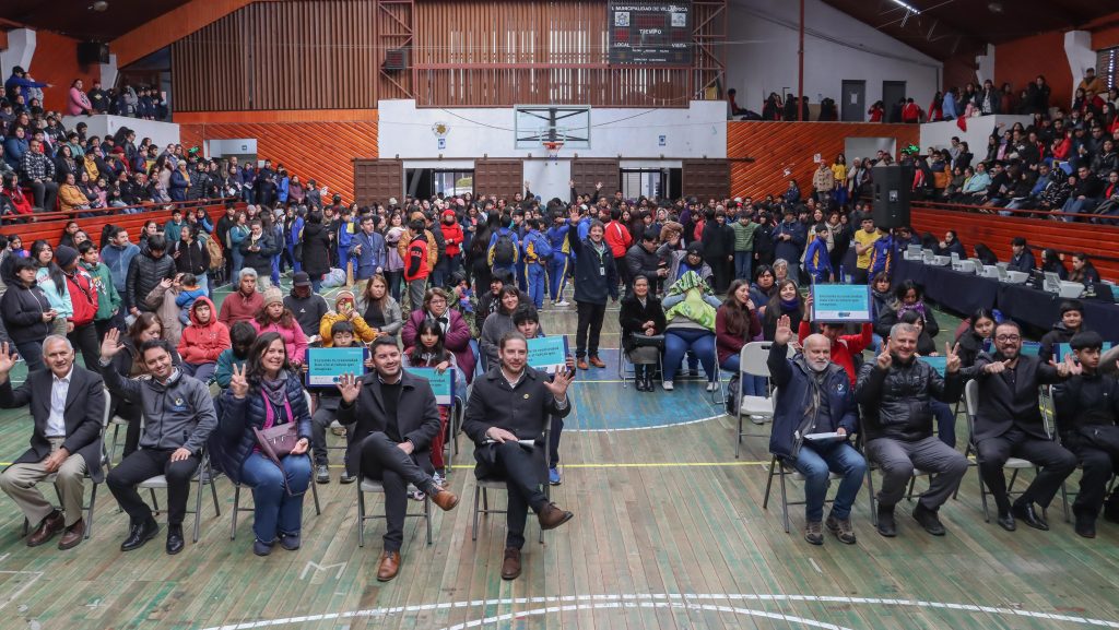 La ceremonia se realizó en el Gimnasio Municipal Carlos Martínez de Villarrica, donde 469 equipos computacionales, fueron entregados a estudiantes de 7° básico de establecimientos educacionales municipales y particulares subvencionados de la comuna.