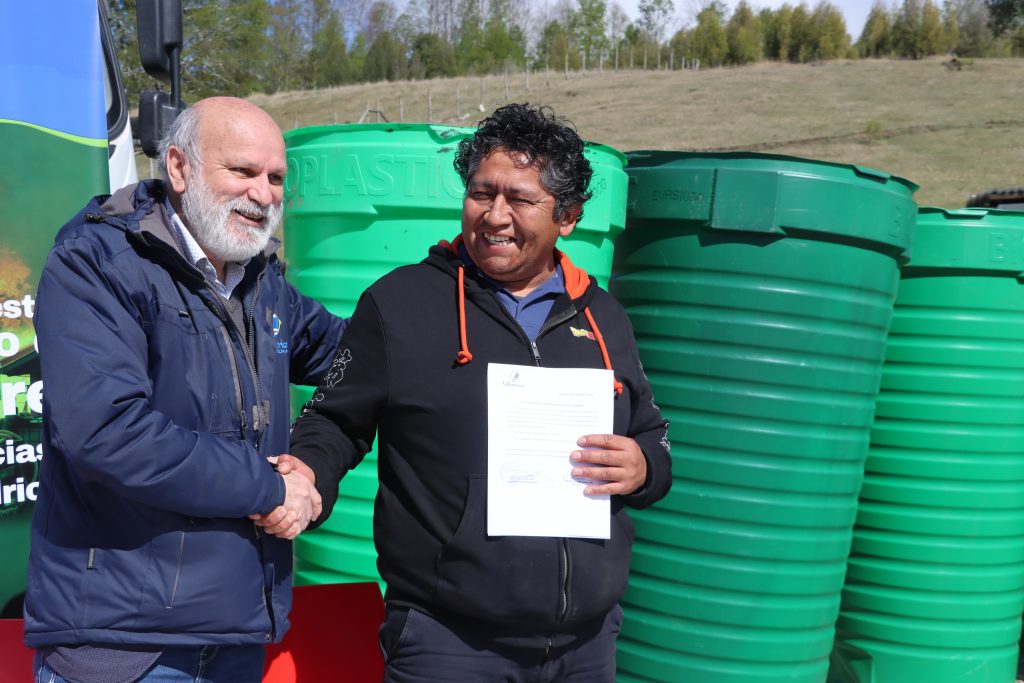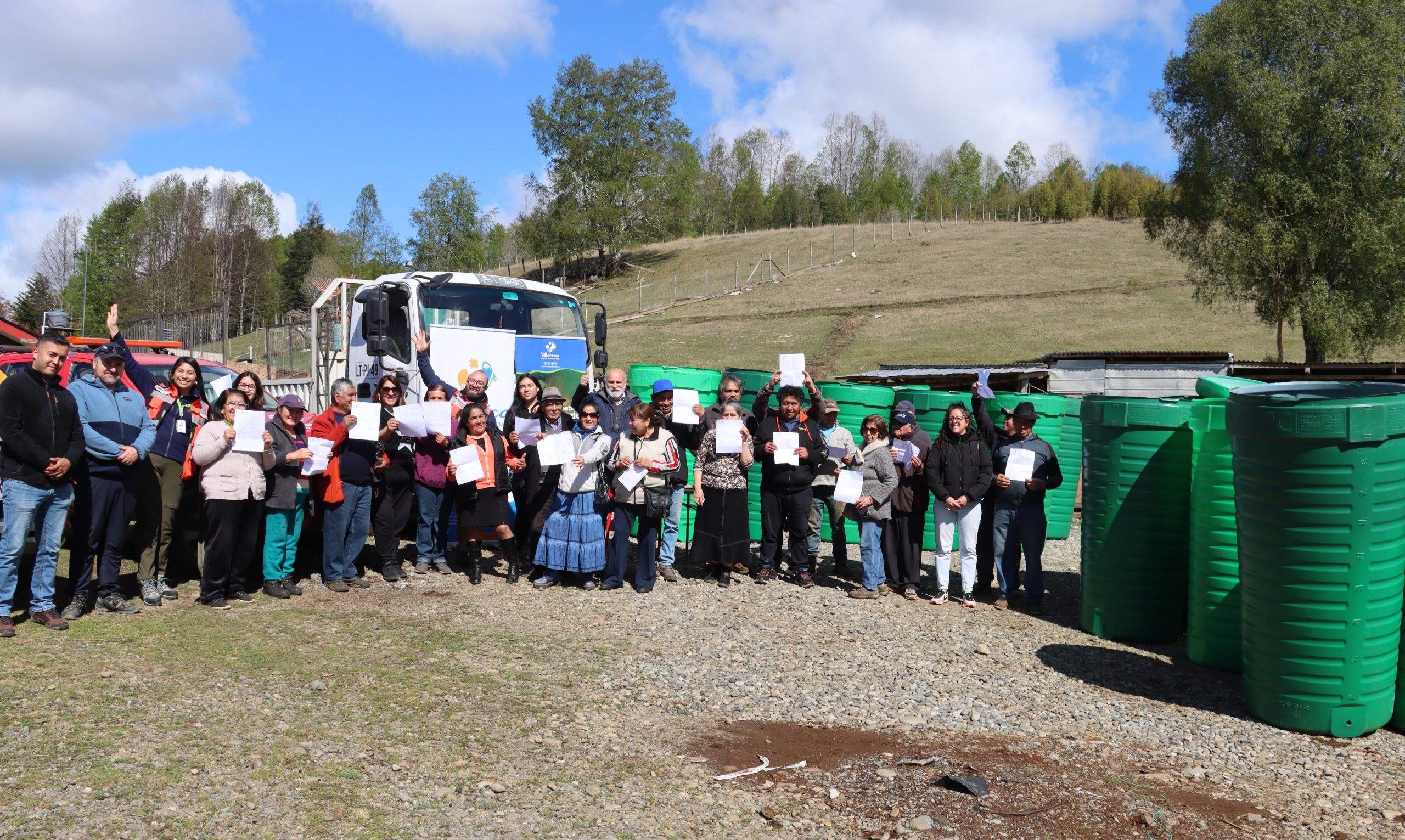 En la sede del sector Añilco, la Municipalidad de Villarrica, a través de la Unidad de Gestión del Riesgo de Desastres y la Oficina de Déficit Hídrico, hizo entrega de 24 estanques a las familias de la Comunidad José Manuel Tropan del sector Añilco.