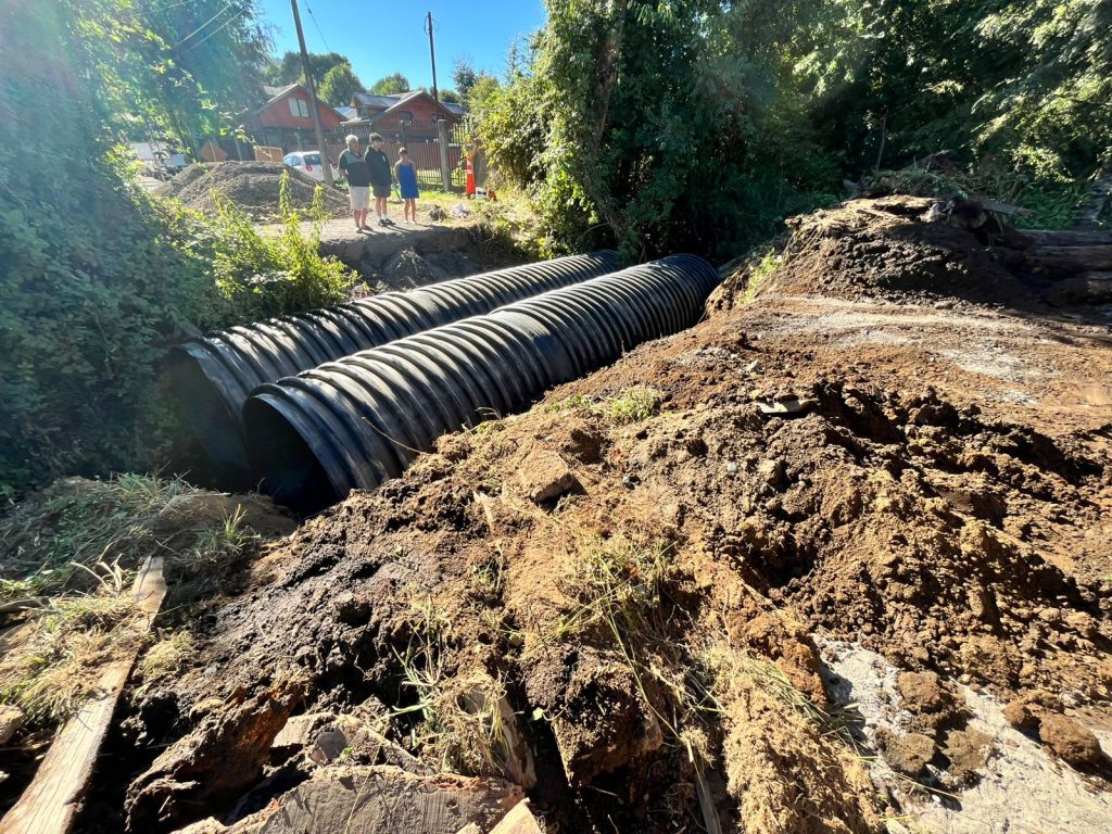 “Debido a la necesidad de habilitar rápidamente el puente Mulpun 2, se determinó su reemplazo por dos tubos de HDPE de 1.800 mm de diámetro y 9 metros de largo y una inversión de 10 millones 300 mil pesos provenientes de fondos municipales, permitió implementar una solución moderna, resistente y de alta tecnología para garantizar la transitabilidad”, detalló el funcionario.