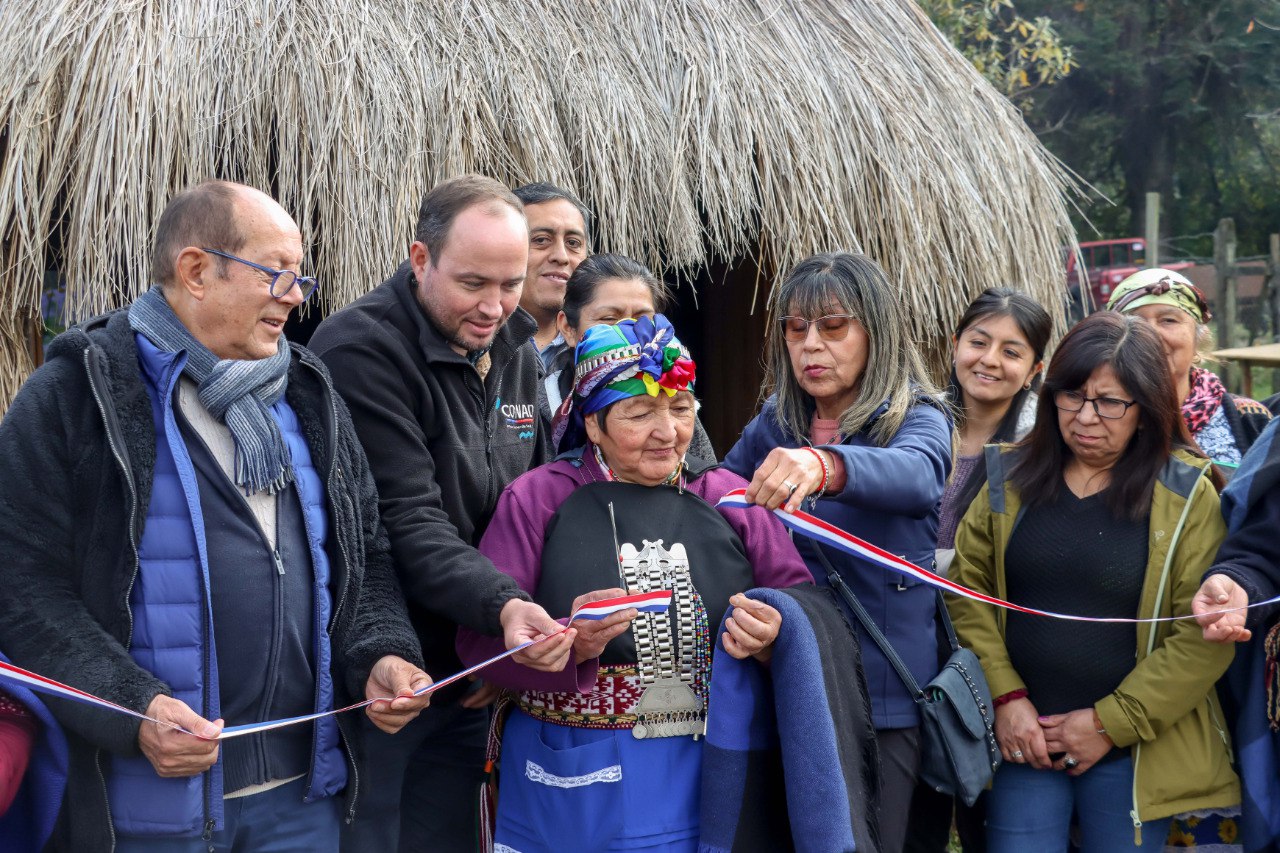 Como parte de la ceremonia de cierre, se inauguró oficialmente uno de los proyectos: la nueva ruka del emprendimiento “We Ruka” de la beneficiaria Ramona Quimen.