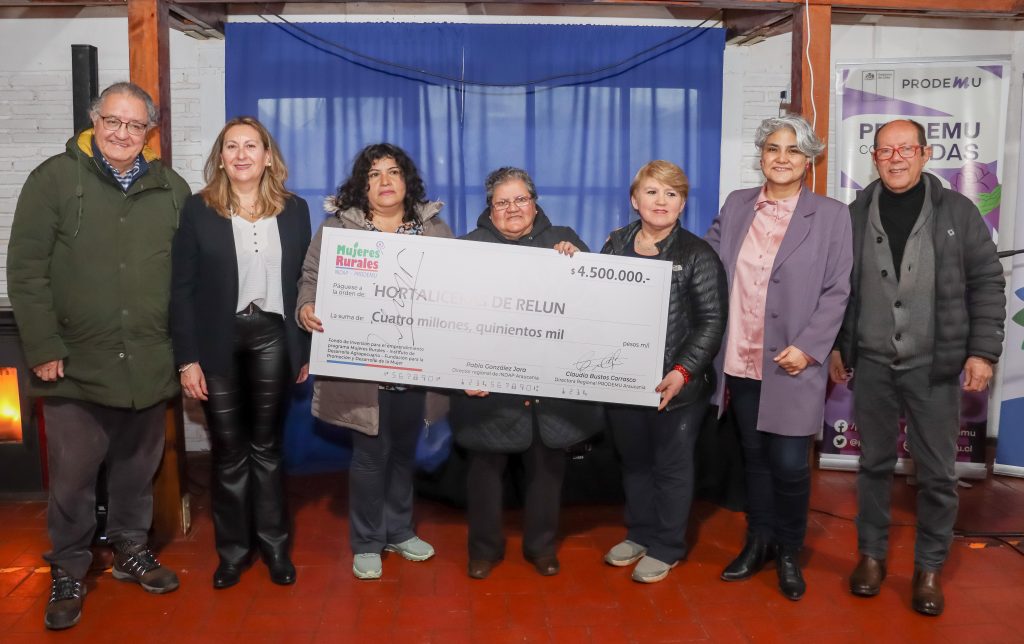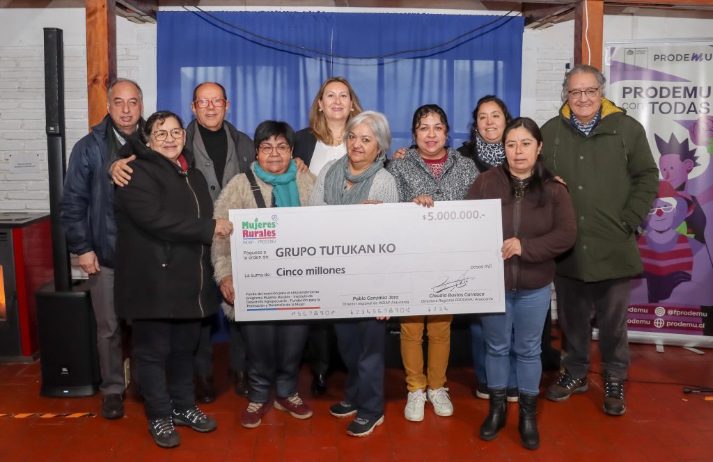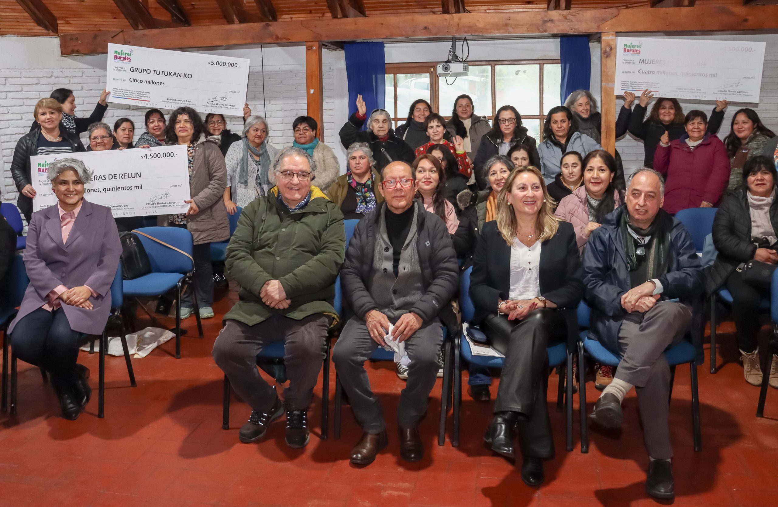 En la actividad autoridades nacionales, regionales y locales realizaron la entrega de los recursos a las organizaciones de mujeres de los sectores de Afunalhue, Conquil, Huincacara y Relun.