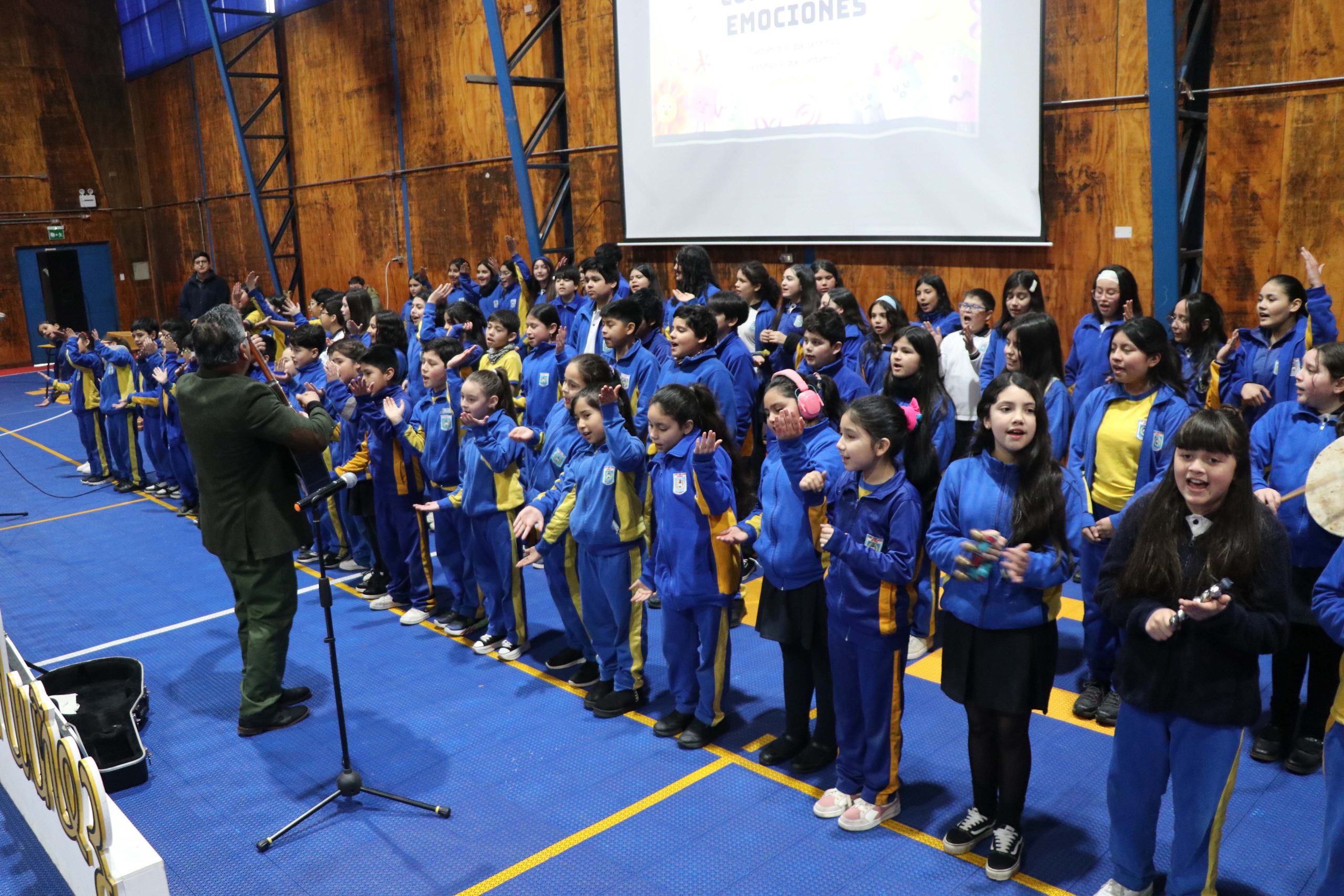 En el gimnasio del establecimiento se realizó la presentación del Coro de Las Emociones, uno de los recursos educativos del Programa Educación Responsable que actualmente se ejecuta en 6 establecimientos municipales gracias a un convenio entre el municipio local, la Fundación Botín de España y la ​Corporación Amigos de Villarrica.