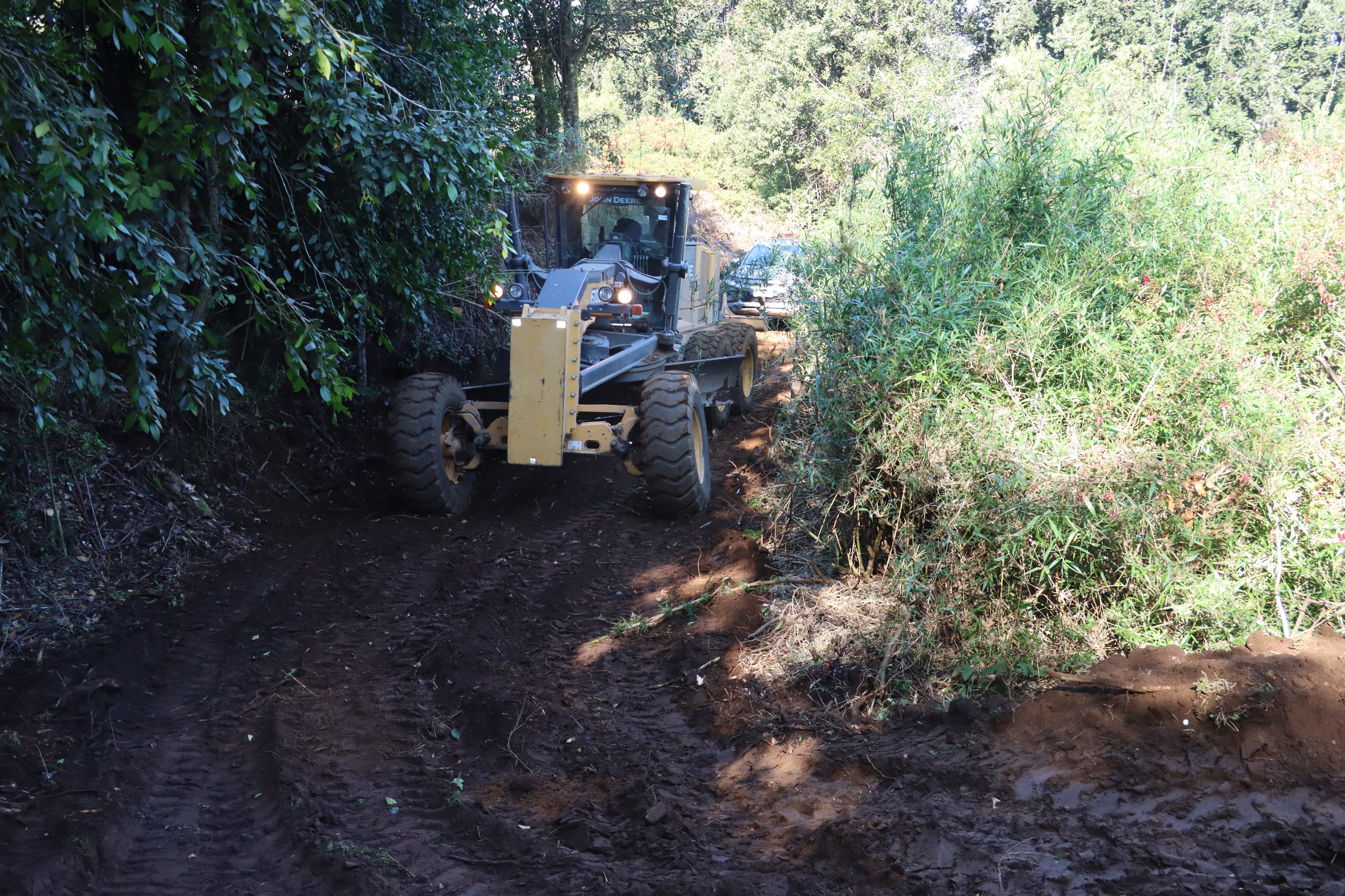 Por su parte Juan Contreras, Operador de maquinaria comentó detalles del trabajo para lograr habilitar la conectividad de las familias del sector : “En este momento estamos haciendo un camino muy complicado, el acceso para estas familias es una tremenda ayuda porque ellos suben sus cosas en carreta, con bueyes, así que es una gran ayuda. Aquí estamos moviendo tierra en estos momentos y lamentablemente hay que mover algunos árboles para poder hacer  el acceso más fácil, igual tuvimos harto riesgo en subir hasta acá porque hay mucha pendiente, se complica harto”.