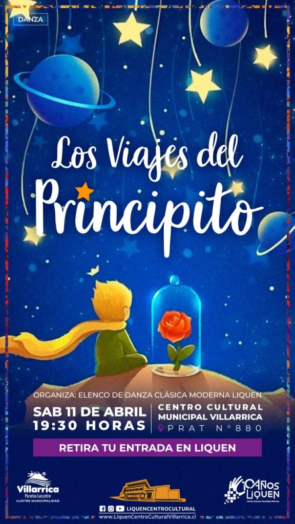Todo dispuesto se encuentra en Liquen Centro Cultural Municipal de Villarrica, para que este sábado 11 de abril a las 19:30 horas el elenco de danza clásica-moderna Liquen, presente la obra teatro-musical “Los viajes del Principito” basada en el libro de Antoine de Saint-Exupéry.