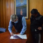 El alcalde manifestó que “firmamos el contrato con la empresa que se adjudicó la construcción de garitas en diferentes sectores rurales. Aprovechamos la oportunidad que estaba el dirigente de Challupen Bajo, sector El Escorial, Sabino Calfuñanco, protagonista de la firma del contrato, y quien nos ha solicitado estos trabajos en repetidas oportunidades, porque hace mucho tiempo vienen estas peticiones y ahora ya se hizo realidad. Por eso, estamos muy contentos”, señaló el edil.