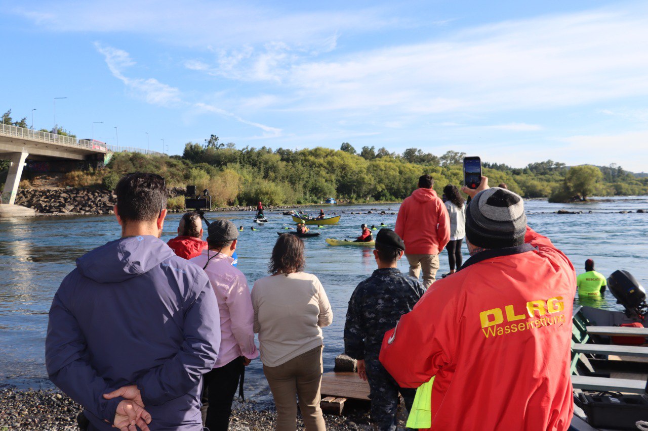Con la presencia del alcalde Pablo Astete, Concejales, estudiantes de establecimientos municipales, vecinos y representantes de los municipios de Villarrica y Freire junto al apoyo logístico de la armada, bomberos equipos Gersa de las comunas de Freire, Teodoro Schmitd, Toltén; se dio la partida a la gran cruzada por las aguas del río Toltén.