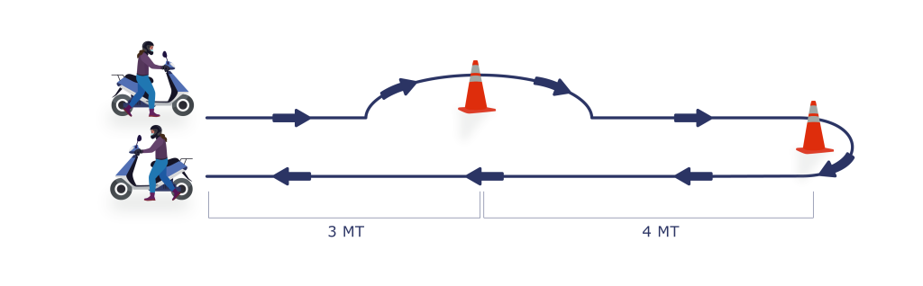 El postulante deberá realizar la totalidad de las maniobras N°s 2.6, 2.7, 2.8 y 2.9, en un tiempo máximo de treinta y cinco segundos.