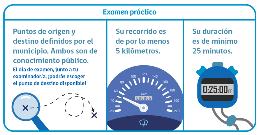 El examen práctico está compuesto de dos etapas: conducción libre y conducción guiada.